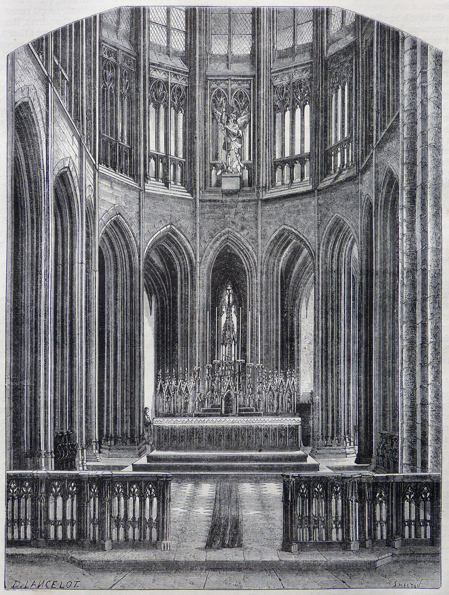 - abbayes, couvents et monastères, arc brisé, chœur, églises et chapelles, France, gothique flamboyant, Manche, Mont-Saint-Michel, Moyen âge, Normandie, statue, triforium, vitraux