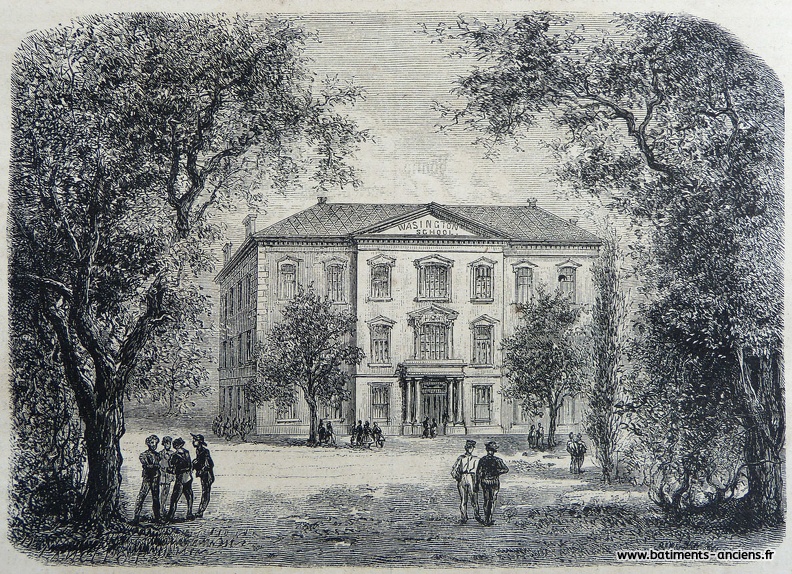 Vue de l'Escurial prise depuis le haut de la montagne. On y voit clairement le site royal, ses tours et son dôme, les dépendances aux alentours. Ce palais situé à proximité de Madrid était la résidence du roi d'Espagne. Inscrit au patrimoine mondial de l'Unesco, il réunit palais, bibliothèque, collège, monastère et musée.